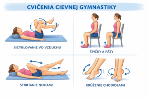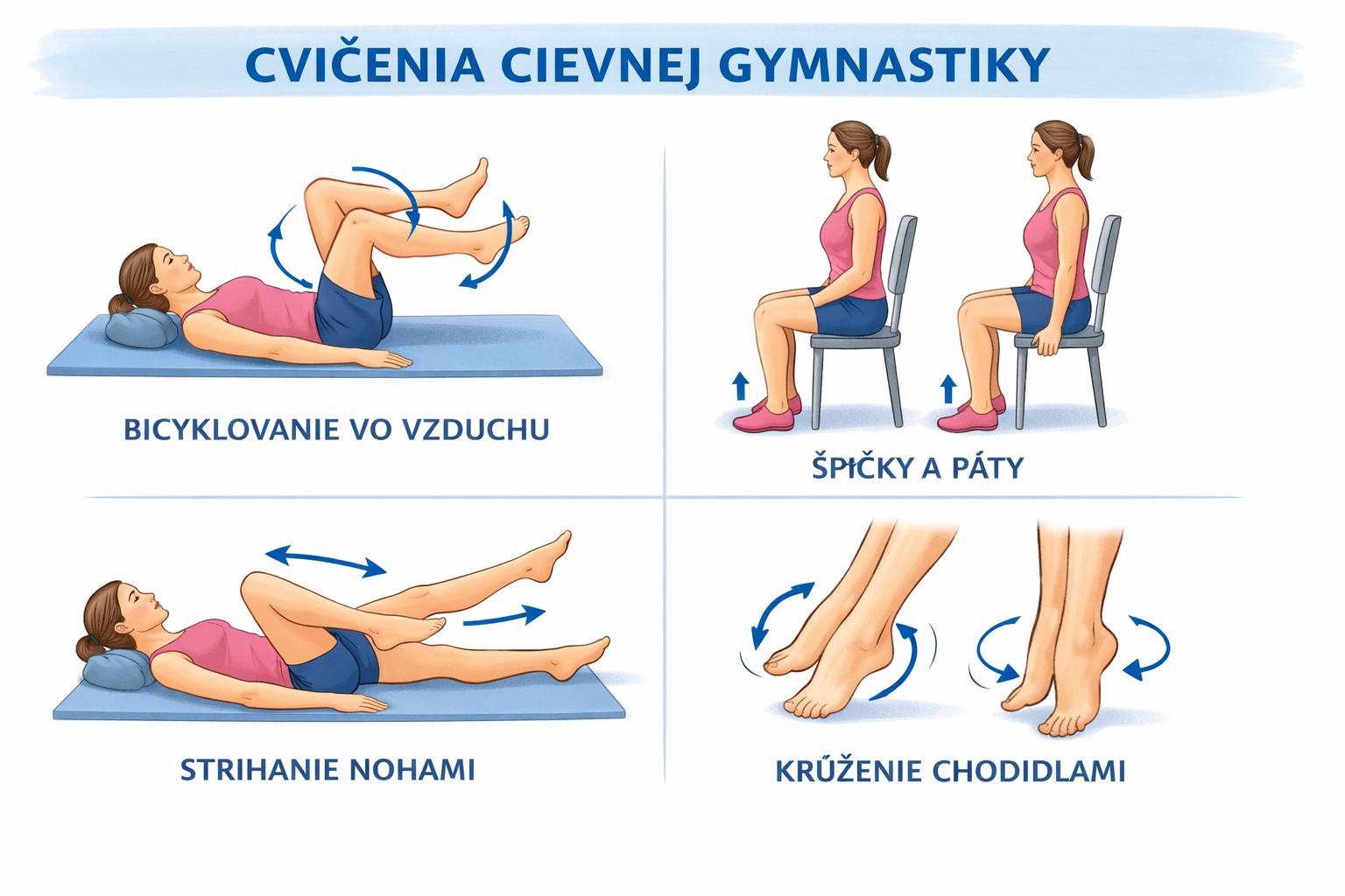 Základom prevencie aj liečby je aktivácia svalovej pumpy dolných končatín. Odporúčam pravidelnú chôdzu, plávanie alebo bicyklovanie. Veľmi účinná je aj cievna gymnastika – jednoduché cviky ako krúženie členkami, striedavé dvíhanie špičiek a piet či simulácia bicyklovania v ľahu. Tieto pohyby podporujú návrat krvi smerom k srdcu.